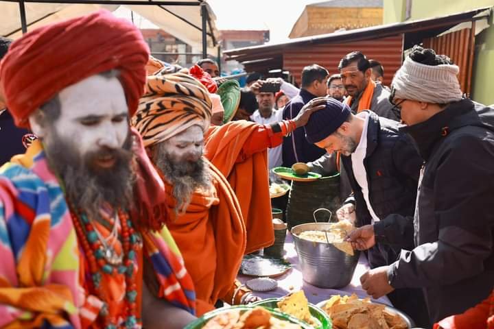 नई दिल्ली। आज सोमवार को राहुल गांधी ने केदारनाथ में श्रद्धालुओं को भंडारा परोसा। तस्वीरों में राहुल गांधी श्रद्धालुओं को भंडारा परोसते हुए दिखाई दिए। और कई श्रद्धालुओं ने राहुल गांधी के सर पर हाथ रखकर आशीर्वाद भी दिया है। इससे पहले माथे पर चंदन का टीका लगाकर जब राहुल गांधी बाबा केदारनाथ की आरती में शामिल हुए तो उन्हें देखने के लिए समर्थकों की भीड़ लग गई। आपको बता दें कांग्रेस के पूर्व राष्ट्रीय अध्यक्ष राहुल गांधी तीन दिन के प्रवास पर केदारनाथ पहुंचे हैं।