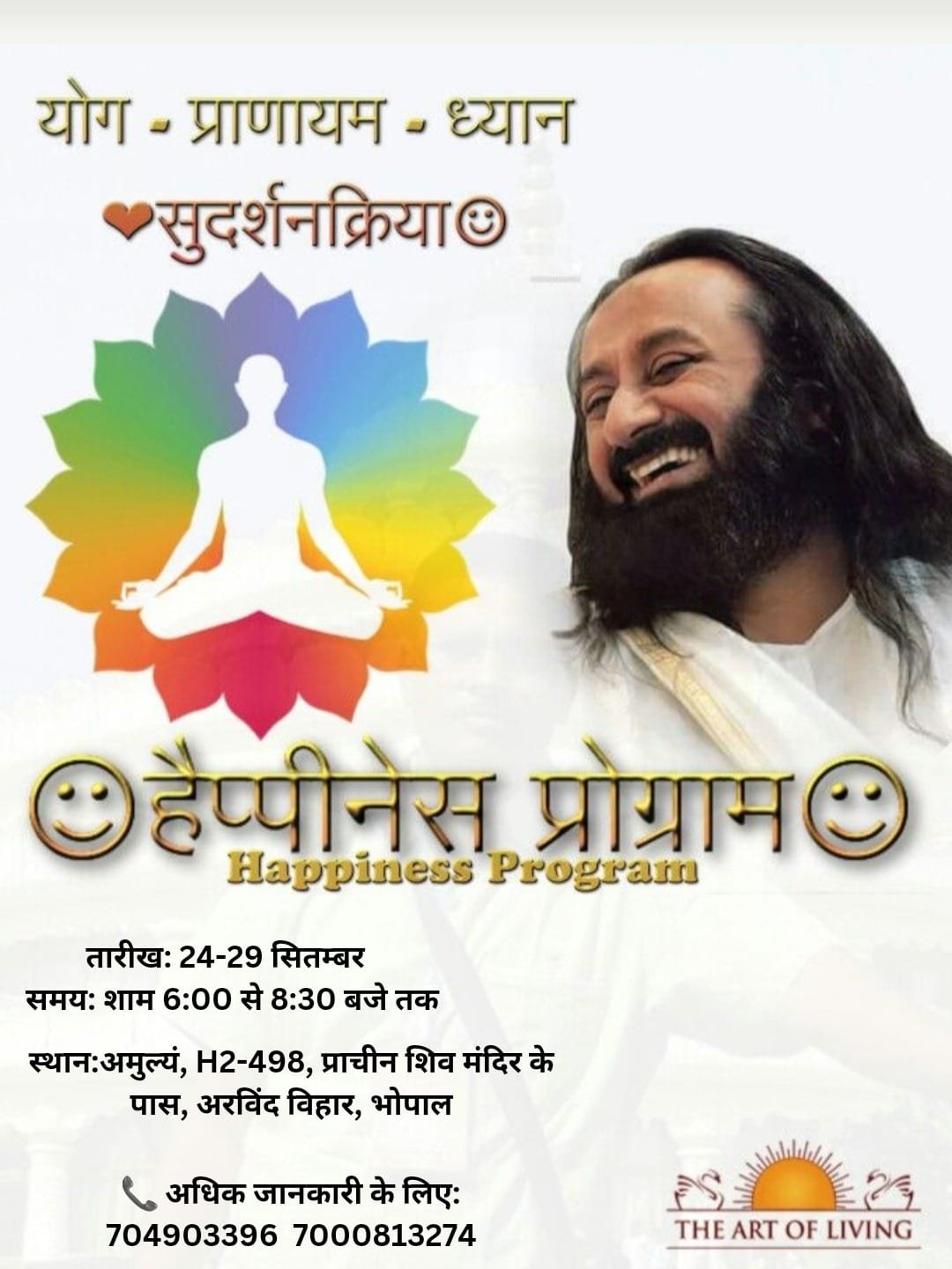 भोपाल में 24 से 29 सितंबर तक आर्ट ऑफ लिविंग का विशेष हैप्पीनेस कार्यक्रम आयोजित